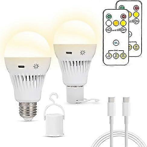 Rechargeable LED Light bulb-2600mAh Battery, Touch Switch, 3 Colors & 3 Brightness, IR Remote, Low Flicker for Home, Outdoor, Emergency