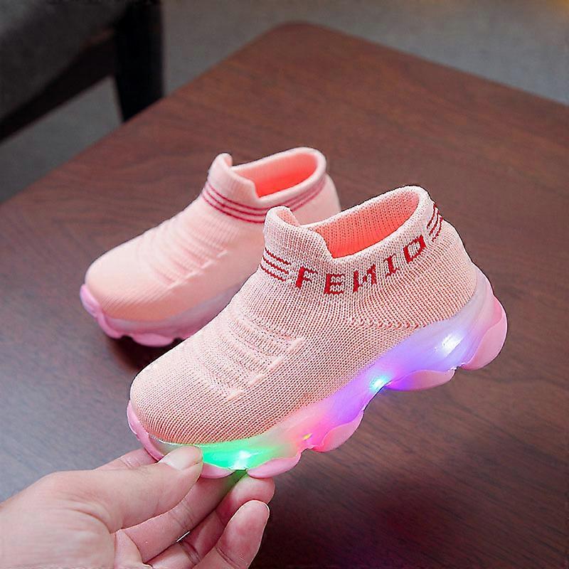 Kids Sneakers Children Baby Girls Boys Letter Mesh Led Luminous Socks Sport Run Shoes