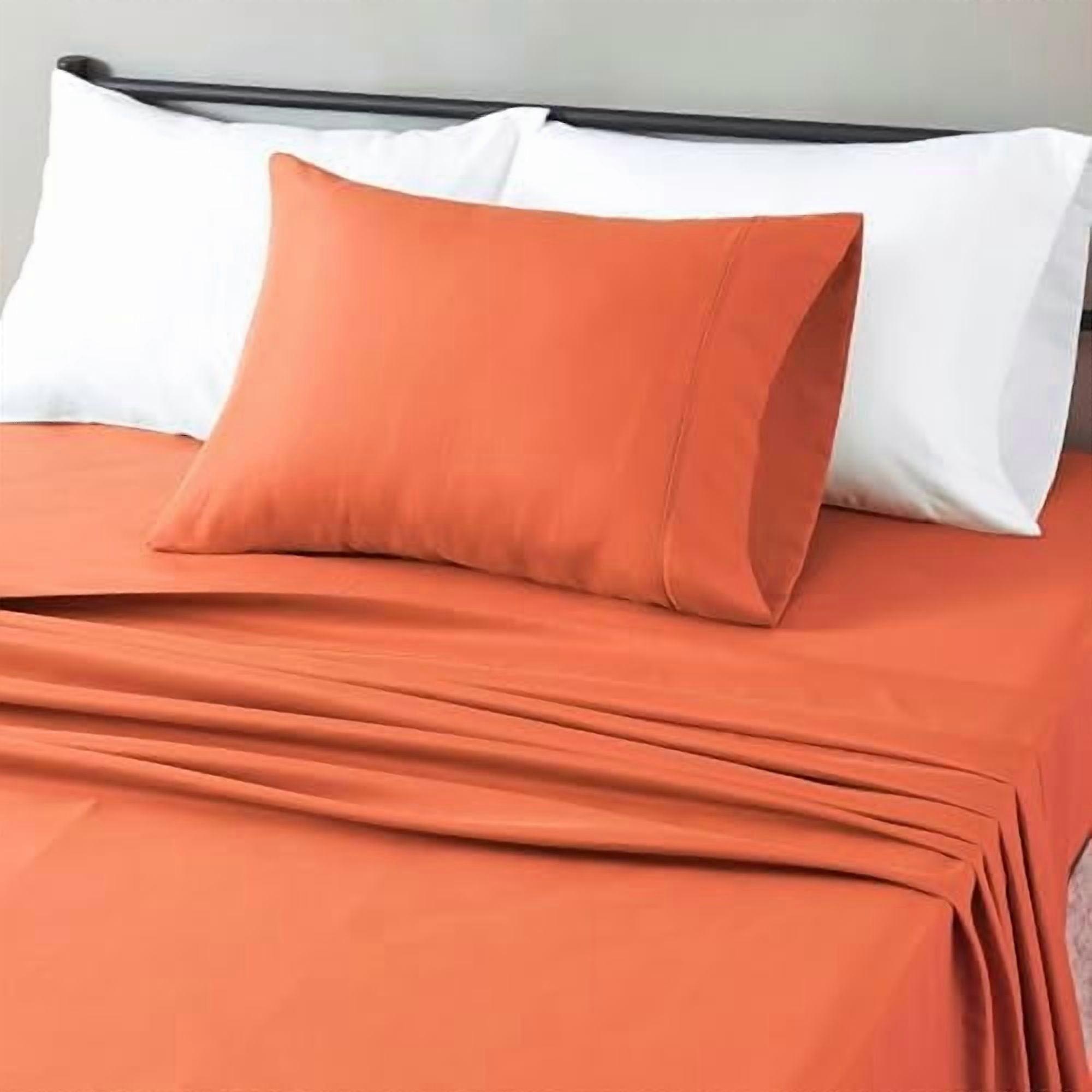 Lightweight Microfiber 3-Piece Bed Sheet Set, Brick, Solid, Twin XL