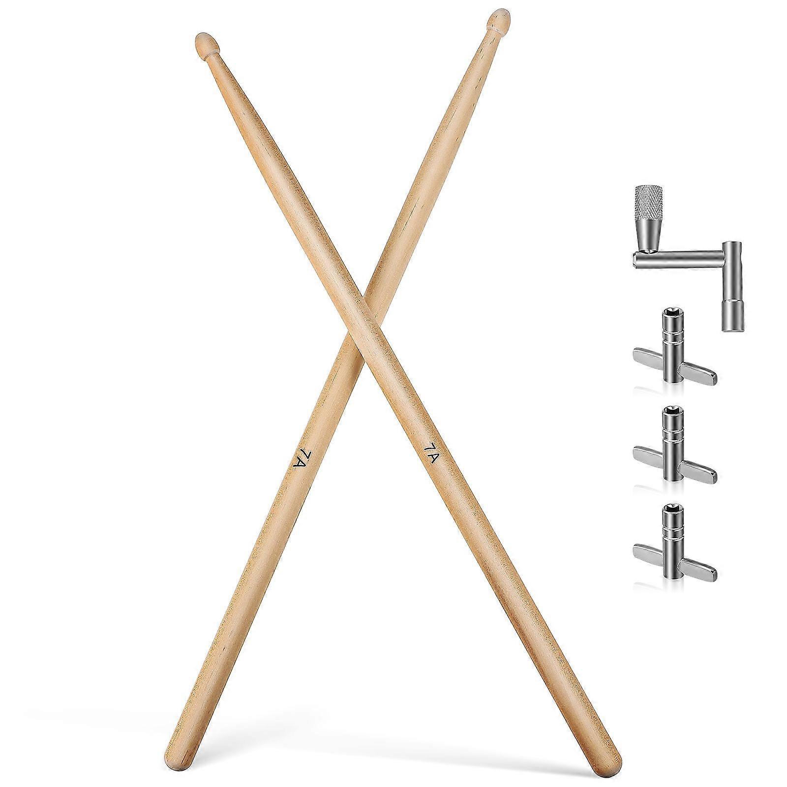 Lightweight Wooden Drumsticks Drum Sticks with Adjustment Wrenches for Music 3Sets
