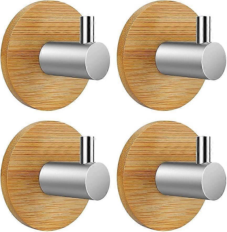 Adhesive Hook Wall Hook Self-adhesive Hook Bathroom Kitchen Office Door, 4 Pieces (Bamboo and Stainl