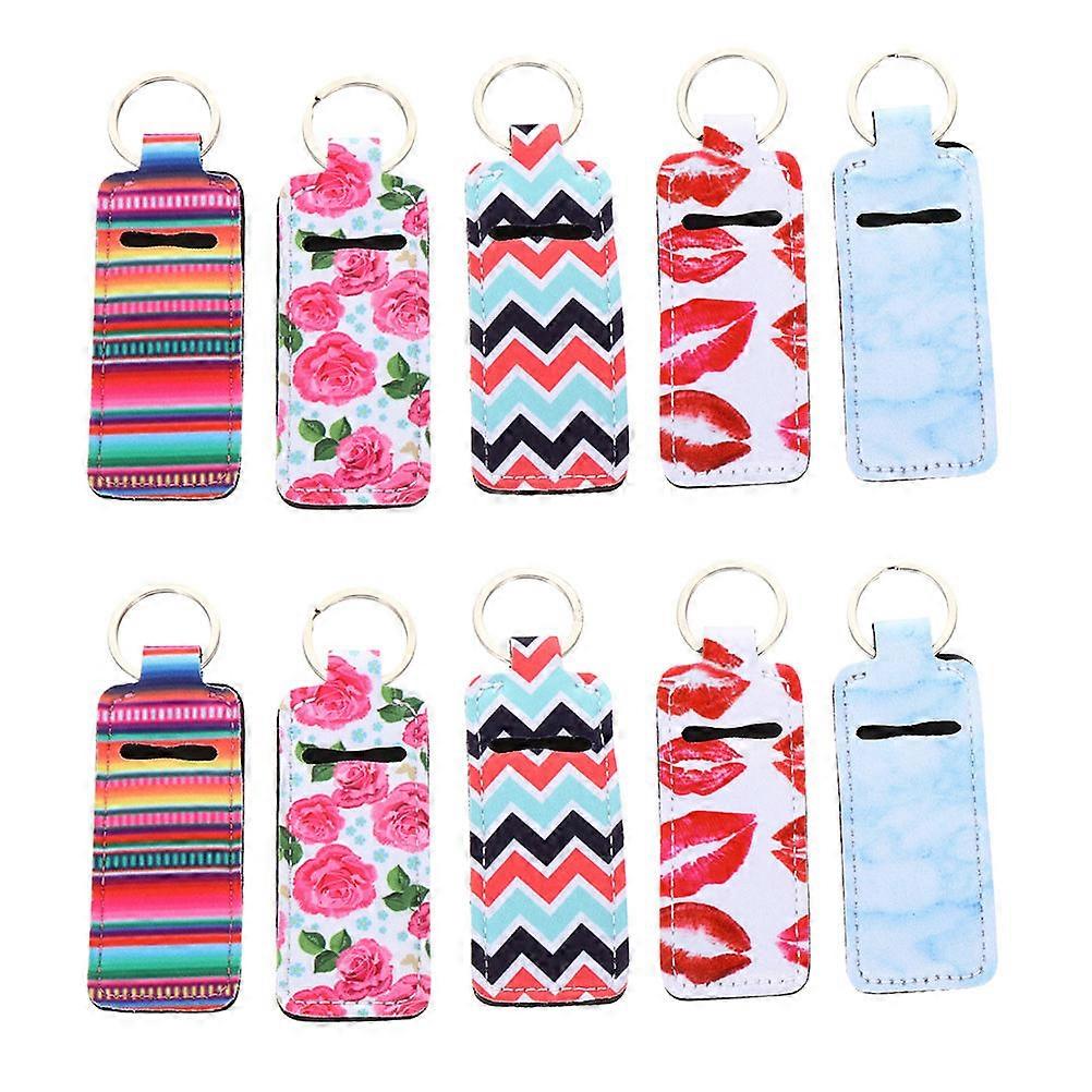 Lip Balm Holder Keychain Travel Square Assorted Color Neoprene Zinc Alloy Keychain 12Pcs