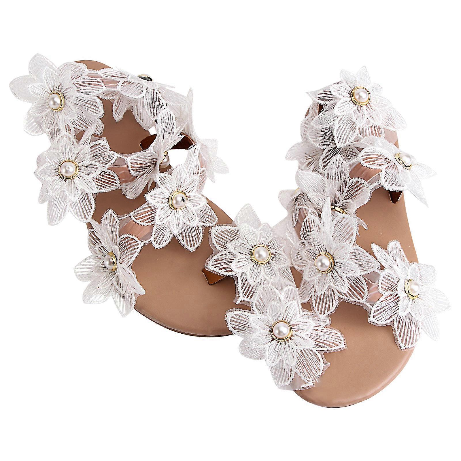 Flat Bottom Sandals Sunflower Pearl Decor Slip-on Sandals 1Pair for Women
