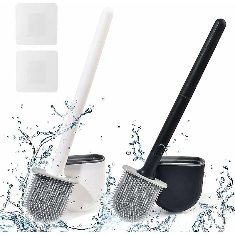 Flat Silicone Toilet Brush Pack Of 2, Toilet Brush And Holders, Wall Mounted Toilet Brush, Gu.b/bon Black + White Silicone Toilet Brush