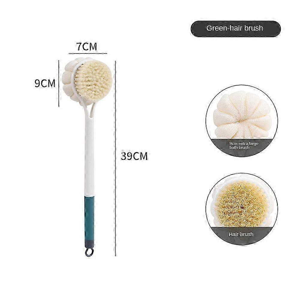 Long handle bath brush with soft bristles and back scrubber
