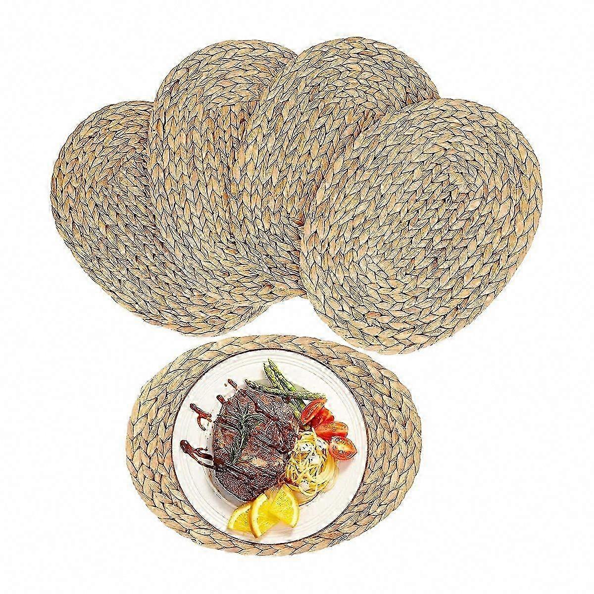 Natural Woven Water Hyacinth Placemats - Oval Rattan Braided Table Mats 12x16 Inch