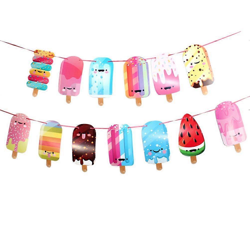 Creative Ice Cream Pull Flower Bunting Banner Decoration Hanging Pull Flag Pennant for Party Festival