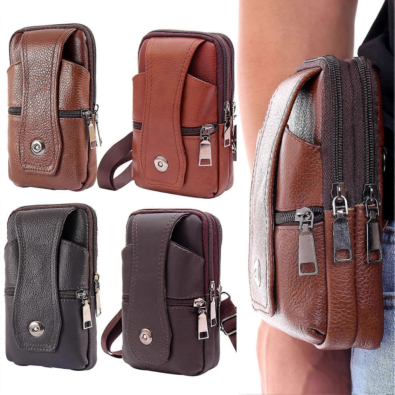 Manunclaims Small Leather Belt Bag Phone Wallet Purse for Men - Waist Bag Mobile Phone Card Holder Case Pouch Travel Messenger Pouch