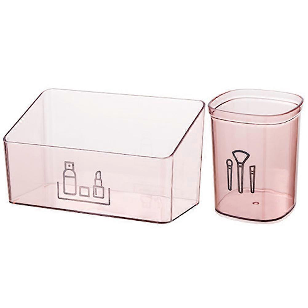 Makeup Organizer Box for Cosmetic Storage and Brush Holder 6Pcs Pink
