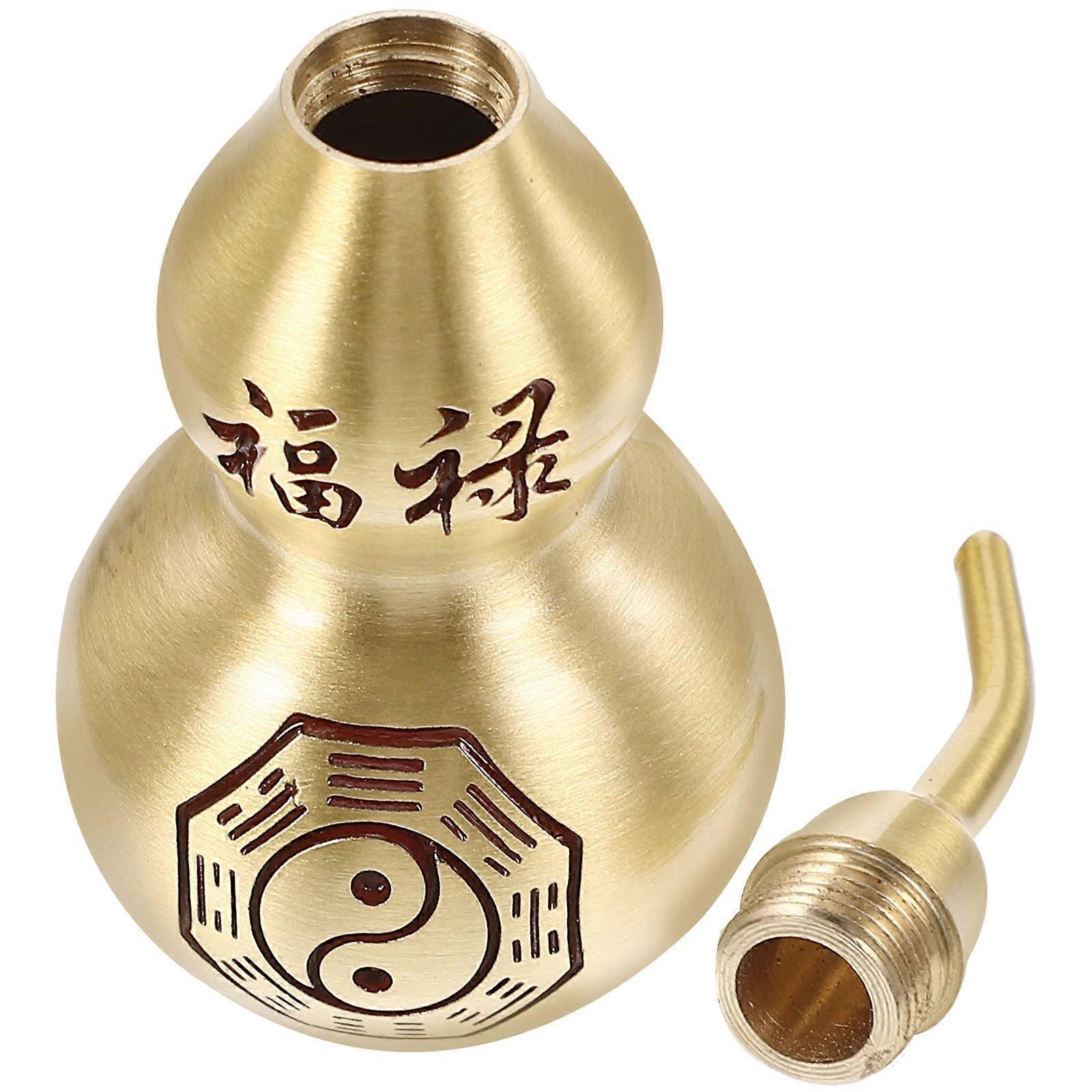 Brass Gourd Ornament with Stable Base Symbolic Treasure Statue for Wealth, Luck and Protection Traditional Chinese Auspicious Home and Office