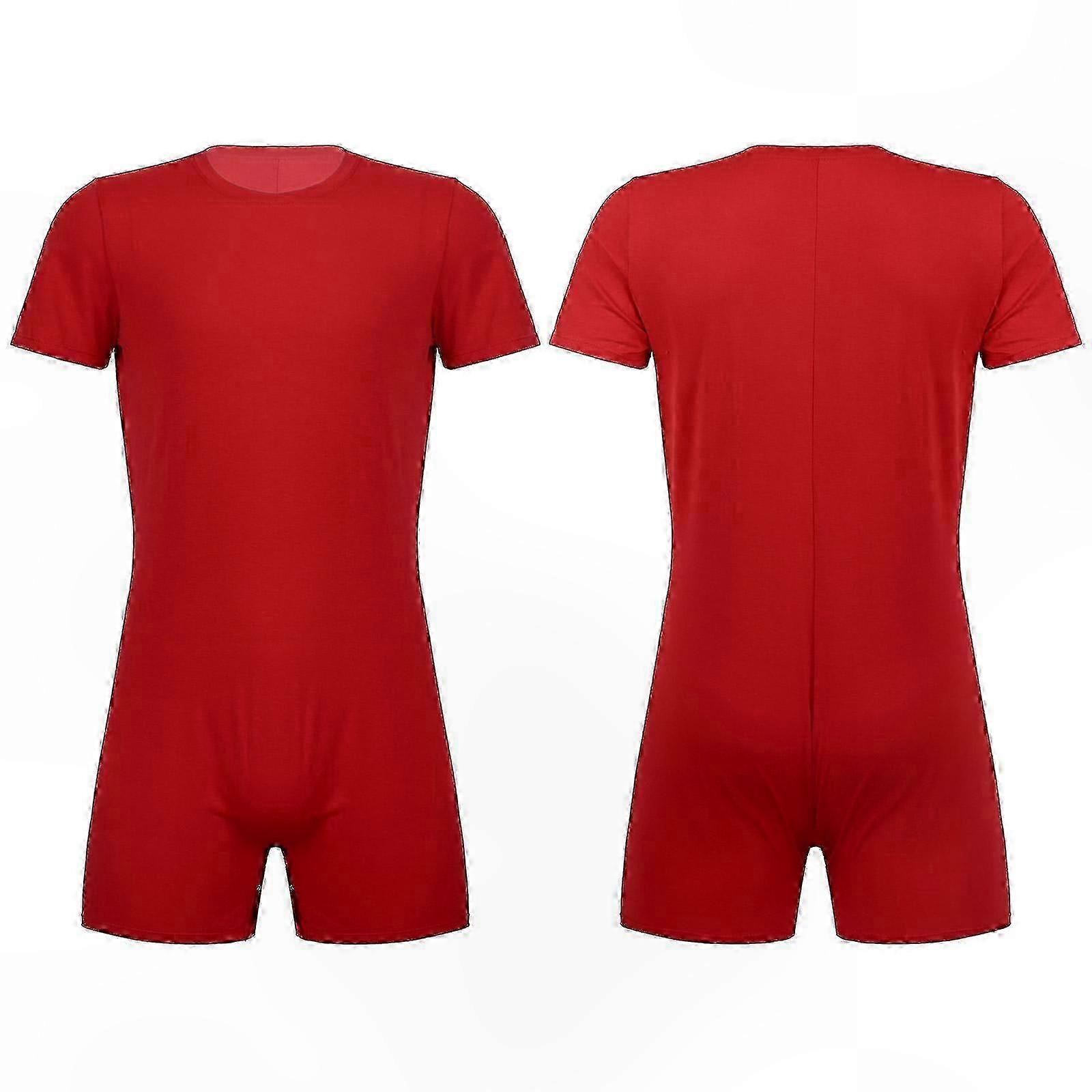 Men's Short Sleeve One-Piece Pajama Romper with Press Crotch