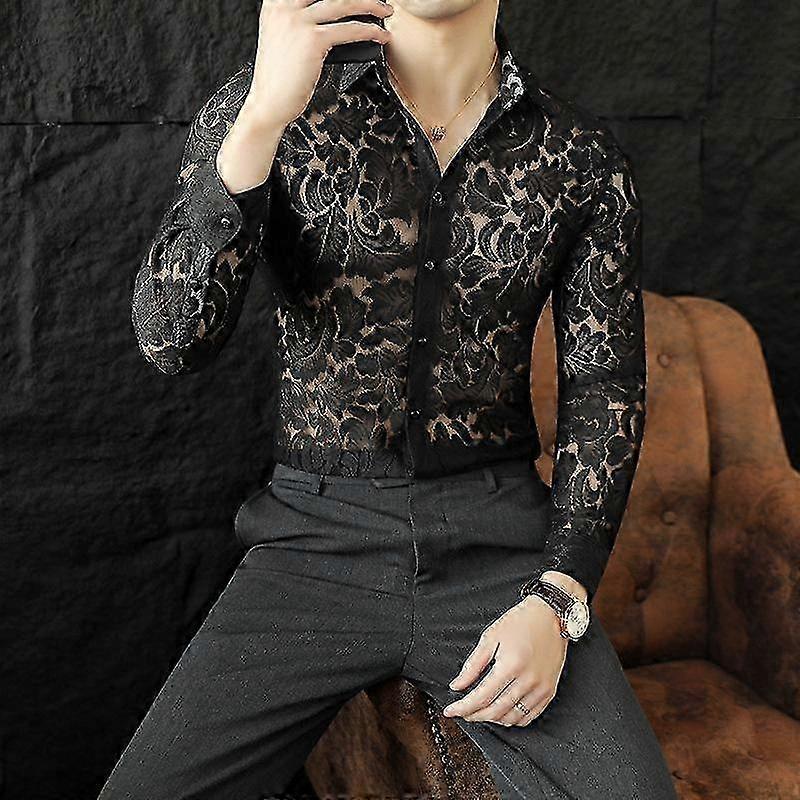Men's Long Sleeve Stand Collar Lace Shirt for Spring Summer
