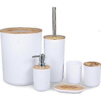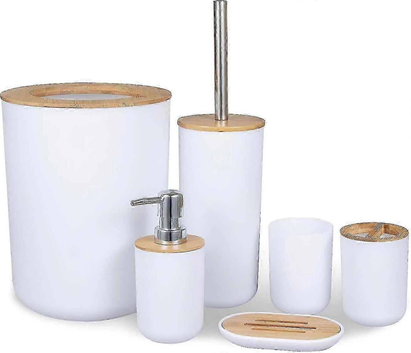 Modern Bamboo Bathroom Set - 6-Piece Essentials with Toothbrush Holder & Trash Can