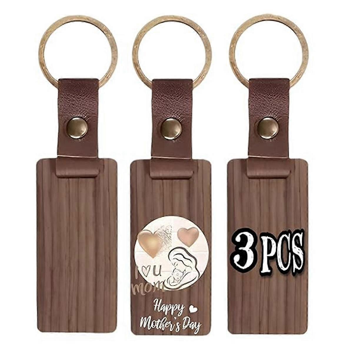 Multi-Pack Wood Keychain Blanks Leather Wood Keychain Blank Unfinished Blanks with Leather Strap Ke