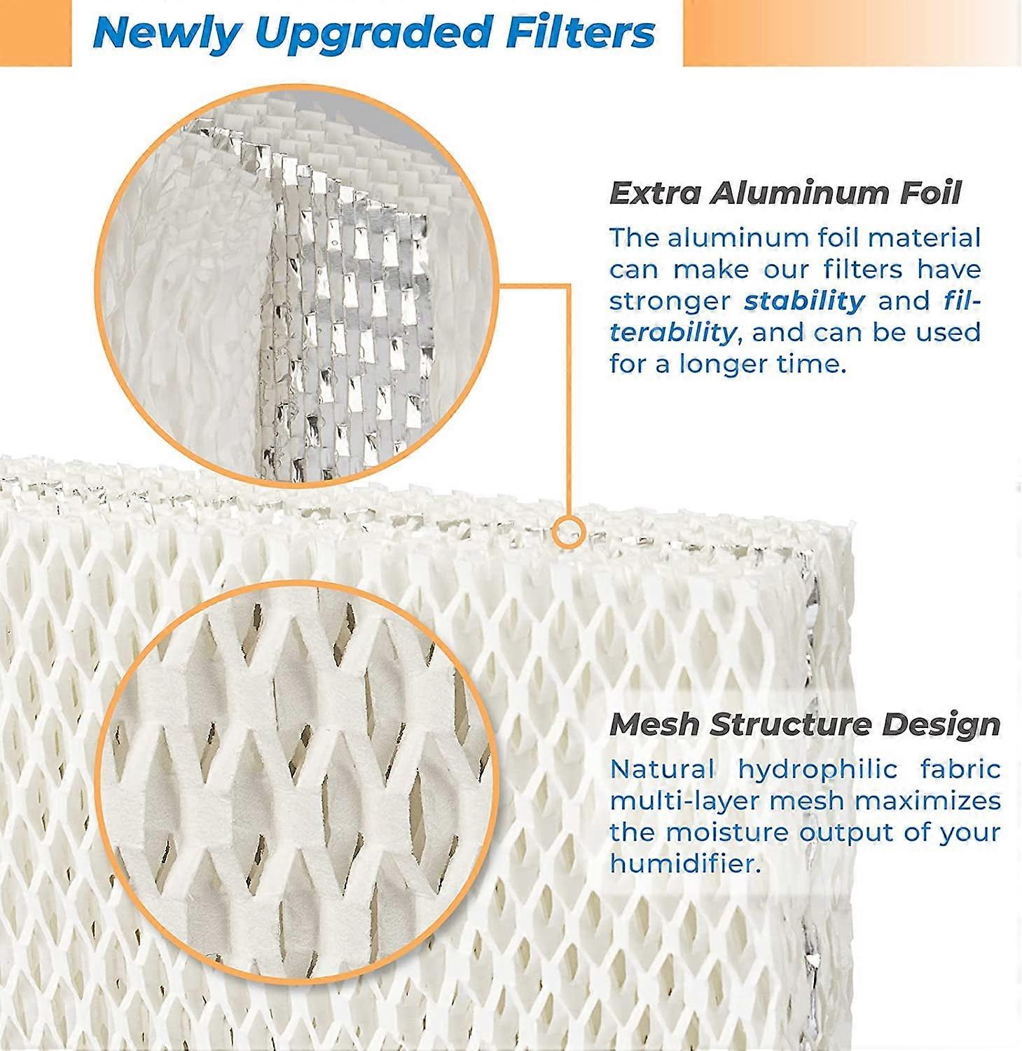 Product Description: Mesh Structure Design: Natural hydrophilic fabric multi-layer mesh maximizes the moisture output of your humidifier. At the same time, it also helps control dust and dirt buildup inside the humidifier. Aluminum Foil in Middle: According to the customers' suggestions, we newly upgraded the material of the filters. The aluminum foil in the middle can make our filters have stronger stability and filterability, and can be used for a longer time. Perfect Fit: Our humidifier filter replacement is perfect fit for Equate EQWF813, EQ 2119-UL; Re-lion WF813, RCM-832, RCM-832N; ProCare PCWF813, PCWF-813, PCCM-832N, PCCM-840; Duracraft/Robitussin DH-830, DH-832, AC-813, ACR-832, D13-C, HC-832; Sesame Street SH100 & SH200, etc. Natural hydrophilic fabric multi-layer mesh maximizes moisture output of your humidifier Upgraded aluminum foil material enhances stability and filterability for longer use Compatible with various models including Kaz WF813 Re-liOn WF813 ProCare WF813 Equate EQWF813 and Duracraft humidifiers Filter size approximately 5.6 x 3.75 x 1.62 verify size compatibility before purchasing Easy installation simply replace the old filter with the new one