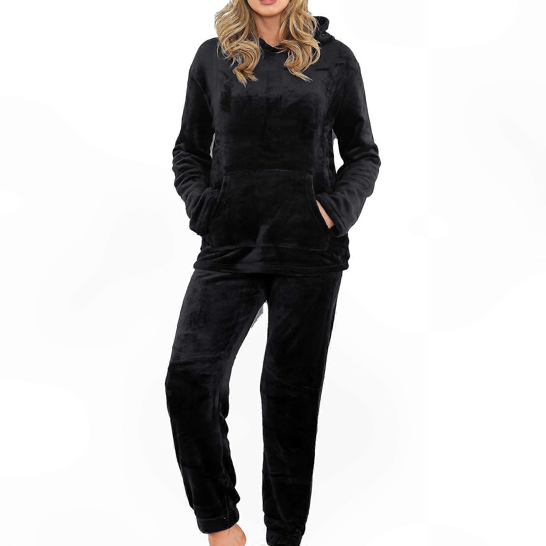 Cozy Fleece Hooded Pajamas for Women - 2-Piece Warm Sleepwear Set