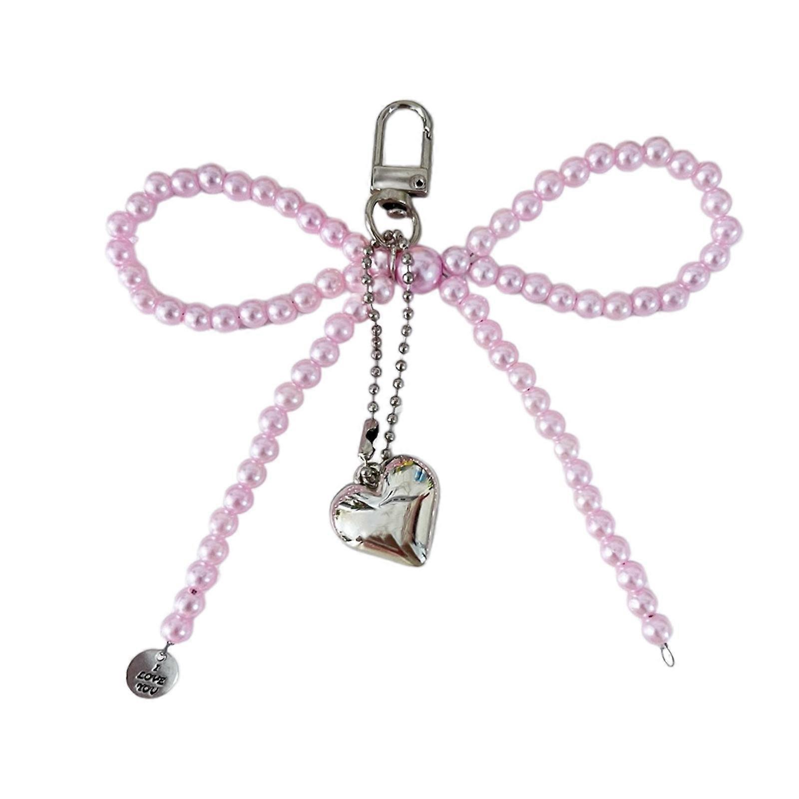 Fashionable Pearls Heart Keychain with Bowknot Versatile Backpack and Phone Pendant Women's Accessory Daily Use