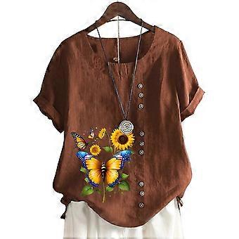 Muodikas naisten puuvillainen lyhythihainen toppi, jossa on 11 värikästä kukkaprinttiä ja pyöreä kaula-aukko