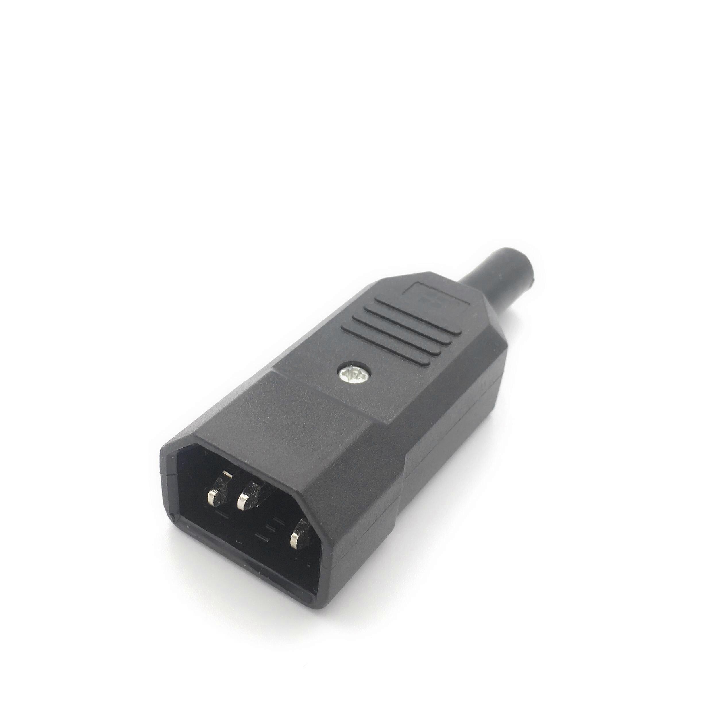 Black Female & Male Power Connector, IEC C13 C14 10A 250V Straight Connector, 3 Pin AC Plug