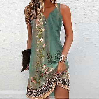 Women Summer Floral Beach Tank Dress Ladies Boho Holiday Button Casual Sundress