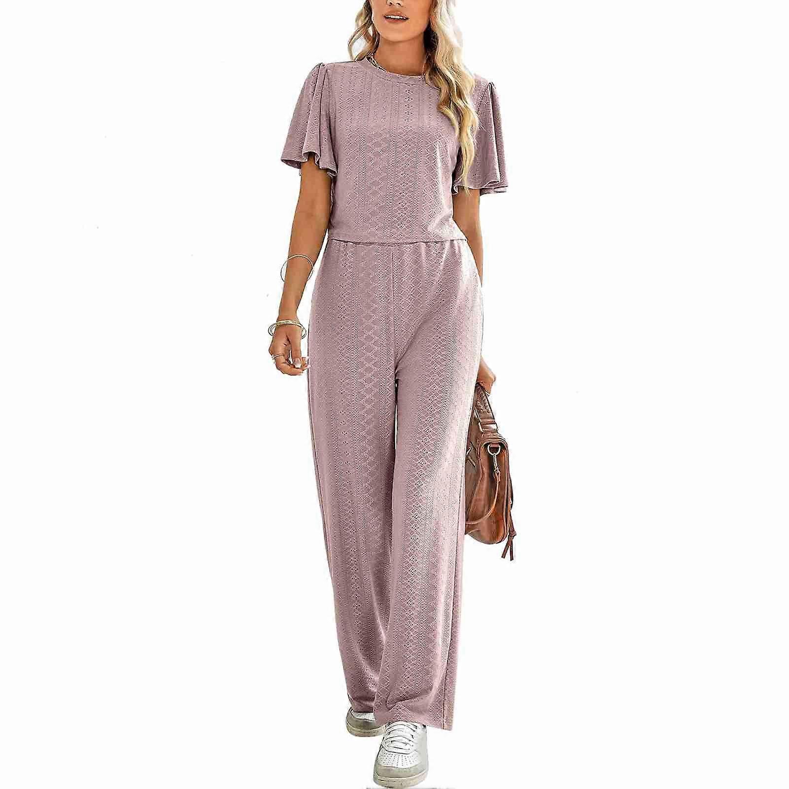 1、Stylish Outfit: Crewneck tops, short sleeve, ruffle sleeve, pants elastic waist tightening design, knitted hollow fabric, overall looks fashionable and elegant. 2、Perfect Matching: Loose and casual style, 2 piece outfit can be matched with sneakers, hats, handbags, etc., make you look more attractive, perfect for women. 3、Multiple Applicable Scenarios: Knit hollow 2 piece outfit is suitable for shopping, dating, street, office work, holiday party, outdoor activity, travel, etc. 4、Wonderful Gift: Short sleeve crewneck outfit can be perfect and meaningful gift for wife, girlfriend, mother, relatives, colleagues etc. on birthday and holiday. 5、Polyester Fabric: Pure color 2 piece outfit adopts polyester and polyurethane fabric, soft and skin friendly, breathable, easy to clean, machine washable, wear resistant and durable. Item Type: 2 Piece Outfit Fabric: 97% Polyester, 3% Polyurethane Washing Method: Machine washing Characteristics: Crewneck, knitted hollow fabric, ruffle sleeves, pure color, pants elastic waist tightening, casual suit. Matching: Match with casual sports shoes, hats, handbags to create a stylish look, and can also be worn as a single item. Scene: Ideal for leisure, home, shopping, dating, street, office, work, basic, party, outdoor, indoor, daily wear. Size: Approx. Tops: S: Length: 45cm / 17.72in, Bust: 90cm / 35.43in, Shoulder: 37cm / 14.57in, Sleeve Length: 23cm / 9.06in M: Length: 46cm / 18.11in, Bust: 95cm / 37.4in, Shoulder: 38.2cm / 15.04in, Sleeve Length: 23.5cm / 9.25in L: Length: 47.5cm / 18.7in, Bust: 102cm / 40.16in, Shoulder: 40cm / 15.75in, Sleeve Length: 24cm / 9.45in XL: Length: 49cm / 19.29in, Bust: 109cm / 42.91in, Shoulder: 41.8cm / 16.46in, Sleeve Length: 24.5cm / 9.65in Pants: S: Length: 103cm / 40.55in, Hip: 97cm / 38.19in, Waist: 66cm / 25.98in M: Length: 104cm / 40.94in, Hip: 102cm / 40.16in, Waist: 71cm / 27.95in L: Length: 105.5cm / 41.54in, Hip: 109cm / 42.91in, Waist: 78cm / 30.71in XL: Length: 107cm / 42.13in, Hip: 116cm / 45.67in, Waist: 85cm / 33.46in 1 x Tops 1 x Pants