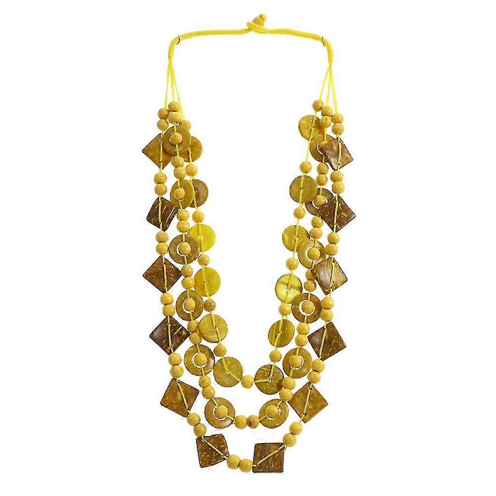 Women Retro Bohemia Style Necklace Coconut Shell Hand-knitted Wooden Beads Beach Fashion Jewelry Pendant Charm for Ladies and Girls (Yellow)