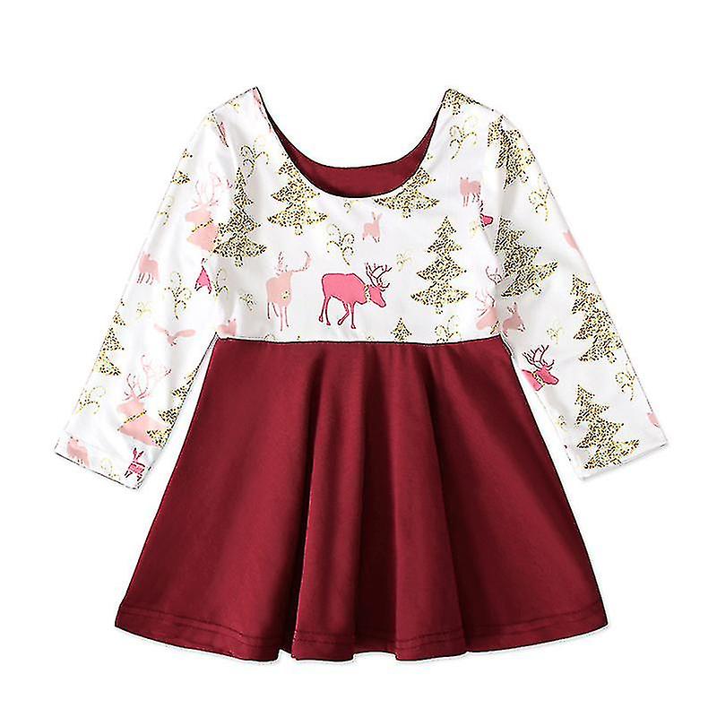 Female Children Europe And The United States Spring And Autumn Long Sleeve Christmas Elk Dress Pumpkin Skirt Children's Clothing Ins