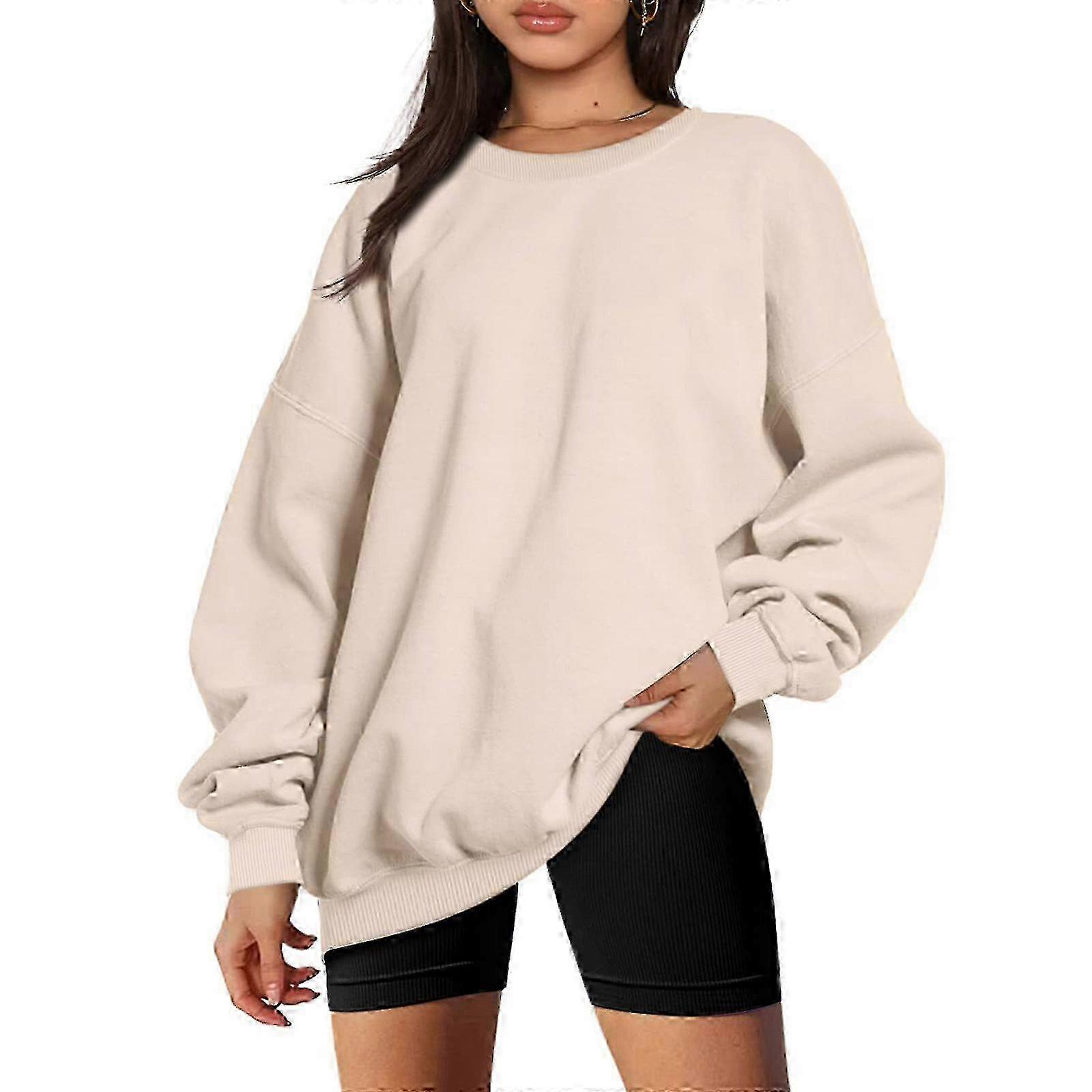 Women's Casual Long Sleeve Crewneck Pullover Tunic Top Fashion Solid Color Drop-shoulder Oversized Loose Sweatshirt milky XL