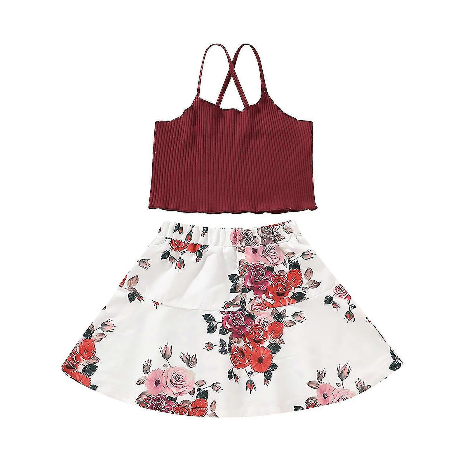 Spring Skirts For Women 2023 Toddler Kids Baby Girls Summer Fashion Sling Top Print Skirt Clothes Suit