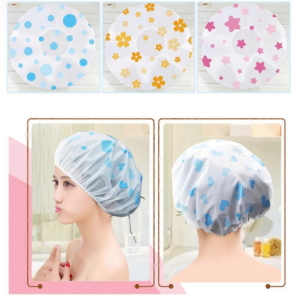 Women Cartoon Heart Lip Flower Print Waterproof Elastic Bathing Hat Shower Cap KAESI
