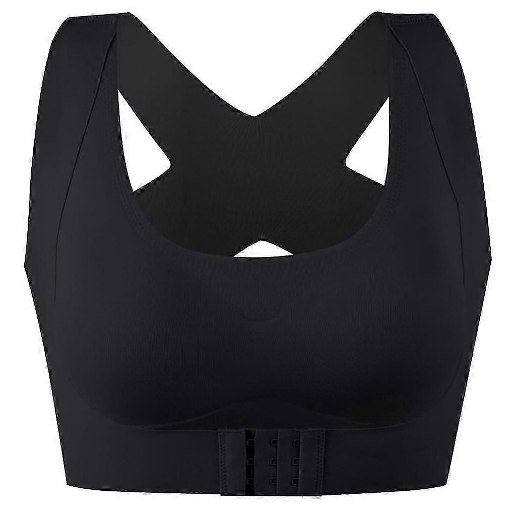 Women Seamless Bra Underwear Front Buckle Push Up Bralette for Cross Back for Ta black M