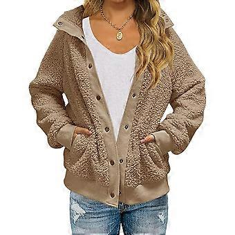 Naisten talvi pitkähihainen nappi Sherpa takki Taskut Lämmin fleecetyyli1
