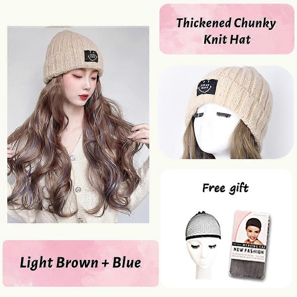 Knitting And Velvet Wig Hat for Autumn And Winter High Temperature Resistant Synthetic Long Curly Hair Fashion
