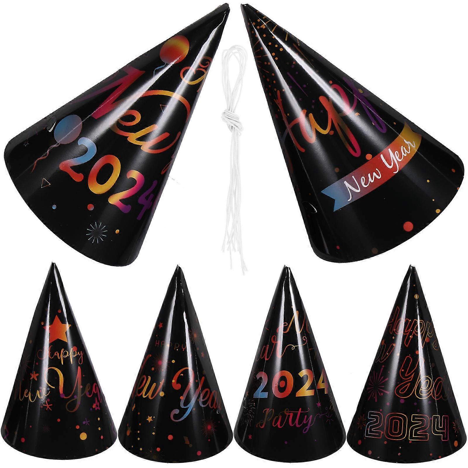 New Year Party Hats Paper Cone Hats for Party 6Pcs Assorted Color Decorations