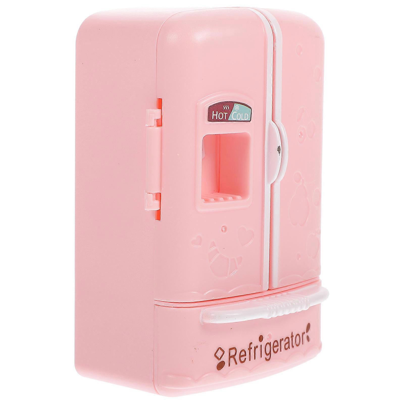 Dolls House Miniature Refrigerator for Playing Pink ABS Fridge