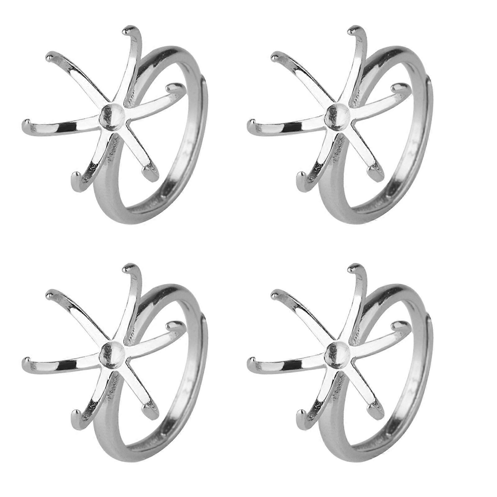 Pack of 4 Adjustable Claw Prong Rings Blank Brass Bases Durable Brass Plated Claw Prong Settings for DIY Jewelry Making