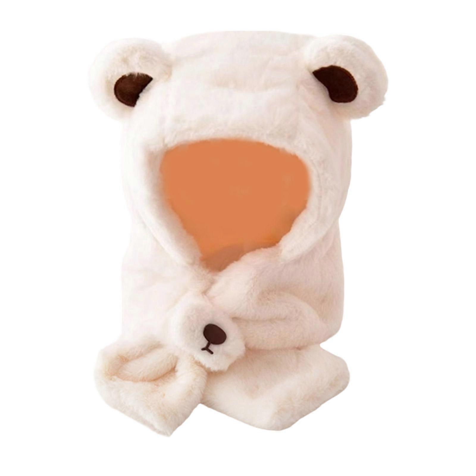 Thicken Soft Earflap Hat For Boys Girls Adorable Bear Ear Neck Warmer Windproof Winter Hat White