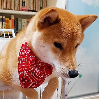 Pet Collar Bandana Adjustable Breathable Skin Friendly Triangular Print Dog Collar with Scarf for Cat Rabbit Red L 2.0cm/0.8in