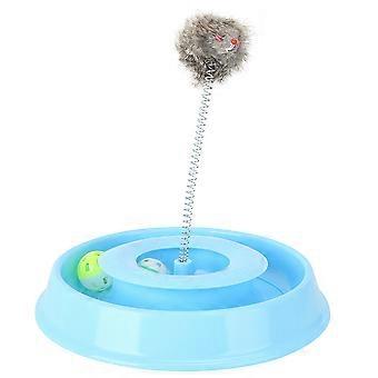 Plastic Pet Cat Kitten Playing Board Teaser Funny Interactive Toy With Bell Ball Spring Mouseblue