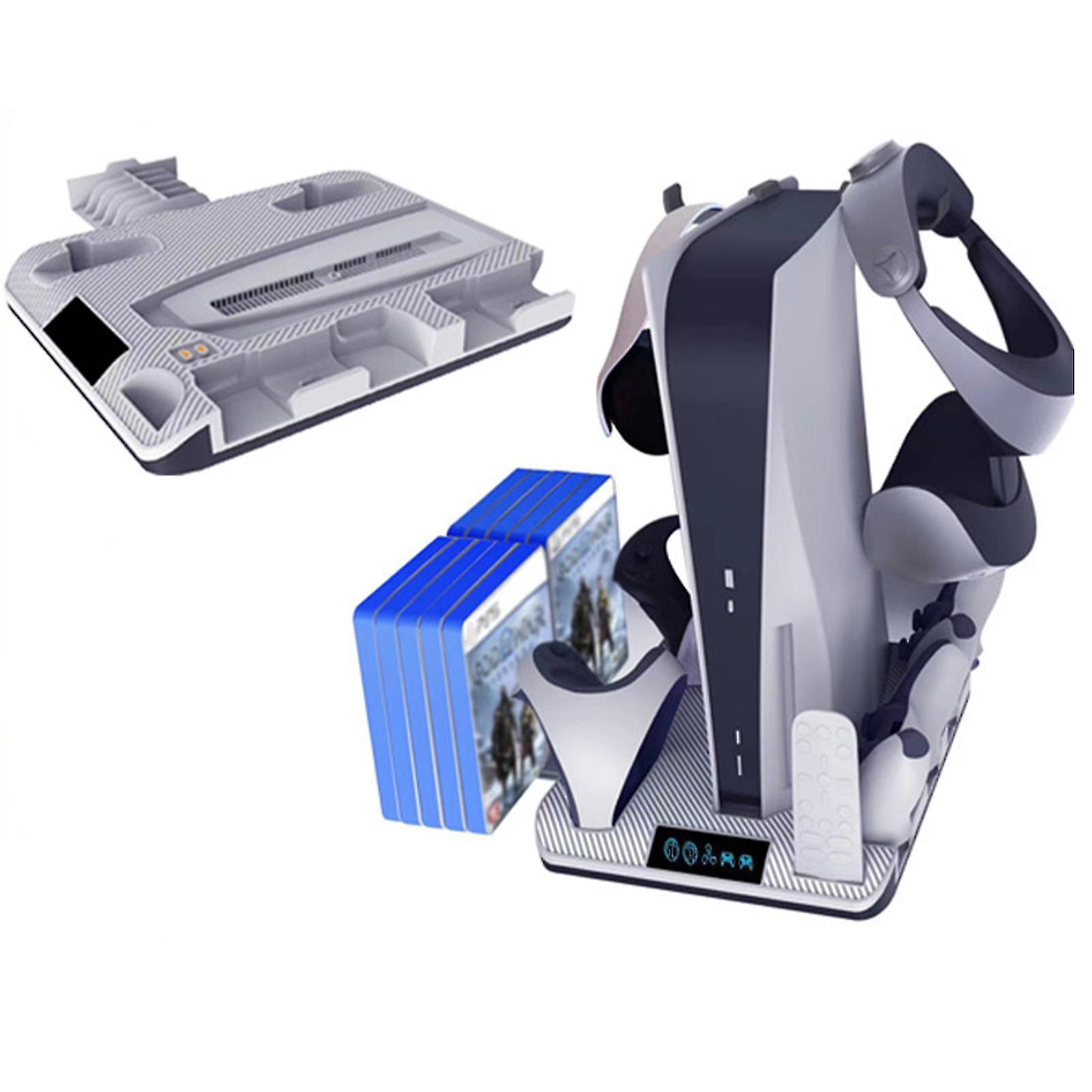Ps5 Vertical Stand With Cooling Station And Controller Charging Dock, Wireless Contact Charging Dock For Ps5 & Ps Vr2 Contollers, Headsets Holder& Slo