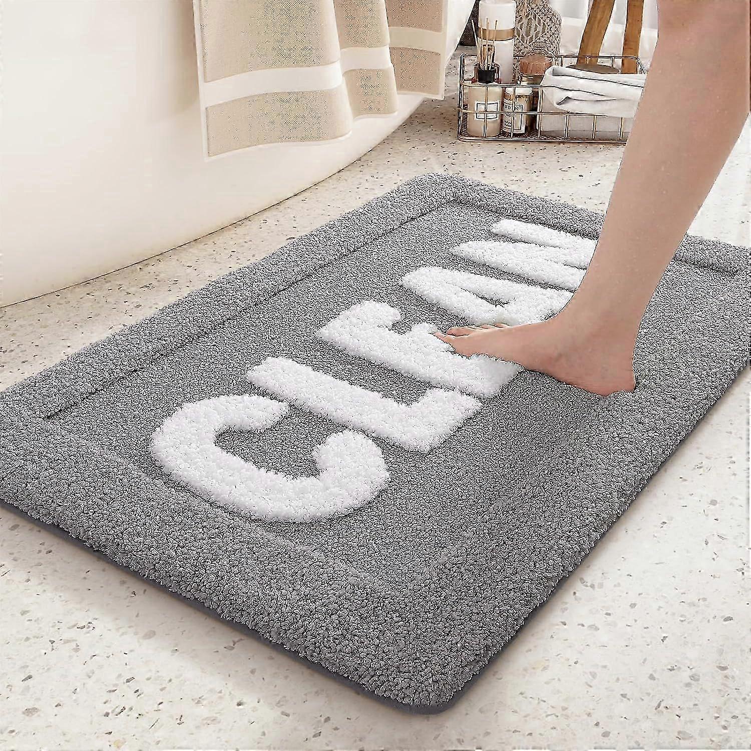 Clean Bath Mat: Cute & Funny Bathroom Rugs - Non Slip & Machine Washable & Absorbent Bathmat - Apartment Decor Aesthetic - Grey and White 24" X 36"