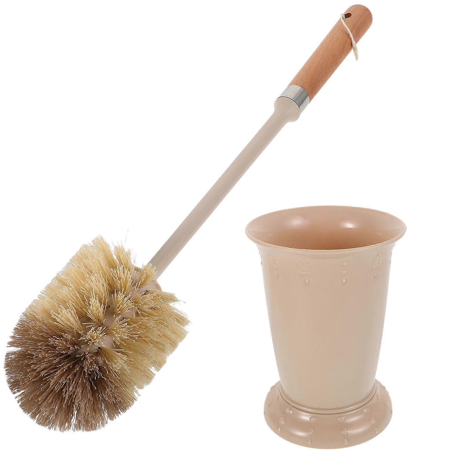 Wooden Handle Toilet Brush for Cleaning 3Pcs Household Bathroom Set with Holder