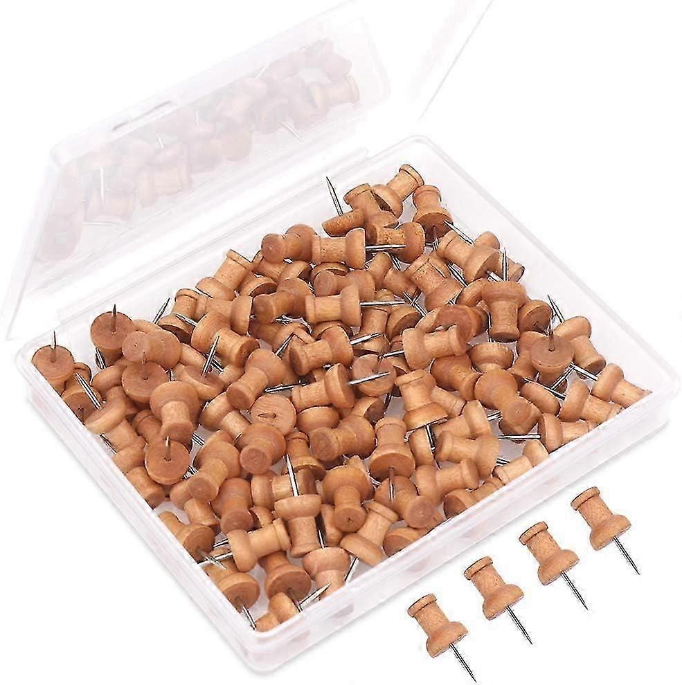 Wood Push Pins 100pcs Drawing Pins-Cork Notice Board Thumb Tacks Wooden Map Pins-Push Pin-Board Pin-Notice Board Pin-Drawing Board Pins-Cork Board Pin