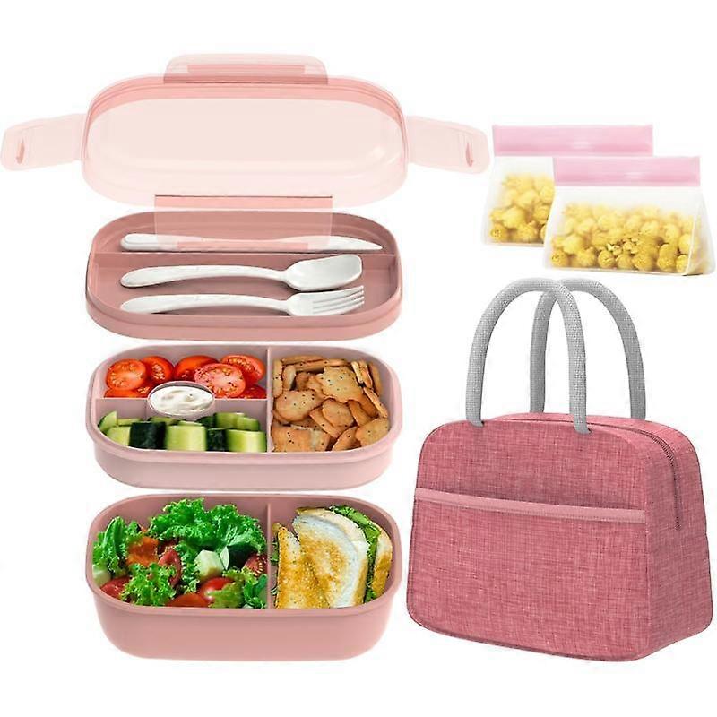 (R) Bento Lunch Box Set - 3 Stackable Containers for Adults and ,lunch box for women- Includes Lunch Bag, Leak-Proof and - Built-in Utensil
