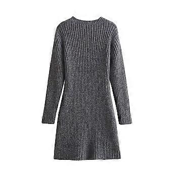 French Retro Round Neck Loose Fitting Long Sleeved Knitted Dress - SNNGV