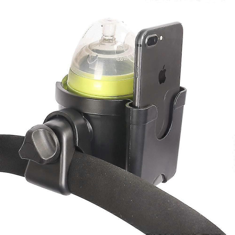 STROLLER ORGANIZER - Have your drinks and phone within your reach. Designed with your convenience in mind, this stroller phone holder allows you to have a secure place to put your phone and cup or water bottle on when you take your baby to the park or when youre riding your bike. You can easily grab your drink when you need to refresh. Securely holds your cup or bottle in place and keeps your drinks from spilling or falling.^ UNIVERSAL STROLLER ORGANIZER - Our stroller Organizer fits most stroller bars and handles like Uppababy vista, Baby Jogger, Britax, BOB, Bugaboo, Maclaren, Thule, Peg Perego, Joovy, or Umbrella stroller, and it can securely hold bottles and cups, while providing easy access to your phone.^ EASY INSTALLATION -This stroller organizer cup holder is very easy to install. Simply clamp on the adjustable stroller hook to your stroller handles or handlebar and adjust as necessary. You can turn the bottle phone holder 360 degrees to get the right angle.^ PHONE AND CUP HOLDER - The cell phone cup holder has a large phone holder, to fit most phones. Enjoy the luxury of your phone at your fingertips at all times of your travel. Large bottle holder to fit most cups and bottles like Starbucks, coffee or your babys milk bottle. The cup holder stays firmly in place even on a bouncy road.^