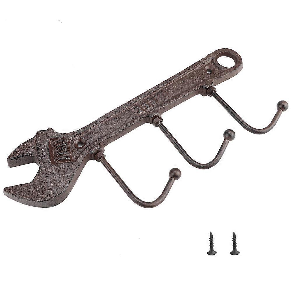 Retro Iron Wall Hanger, Wrench-Shaped 3 Hook Key and Coat Rack