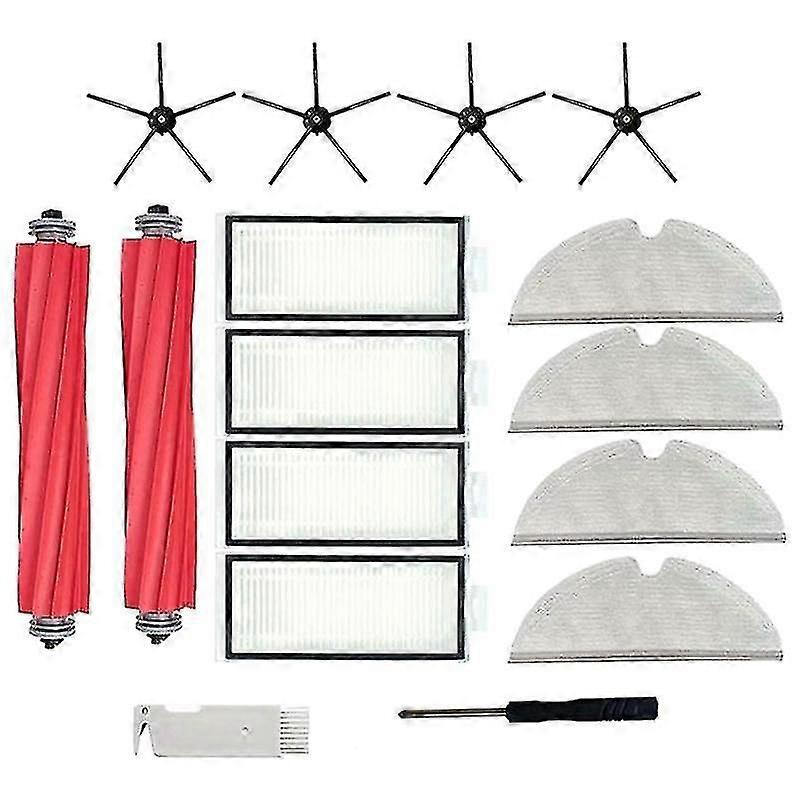 new, high quality material, well made, durable and well matched to equipment. Clean accessories keep your home robot performing at its . Accessory contents are easily removed and replaced as part of routine maintenance. Cleaning accessories keep your robot clean while reducing the infiltration of dust, pollen and other allergens into the air you breathe. To achieve the cleaning filter effect, cleaning accessories should be replaced every 2-3 months depending on the frequency of use. HEPA filters can greatly improve air quality, reducing particle size by up to 99.97%. Helps remove household dust, pet dander, etc. Colour:red+white Material:plastic Package Contents: 2 x roller brush 4 x side brush 4 x mop cloth 4 x hepa filter 1 x clean brush 1 x screwdriver Only the above package content, other products are not included. Note: Light reflection and different displays may cause the color of the item in the picture a little different from the real thing. The measurement allowed error is +/- 1-3cm.