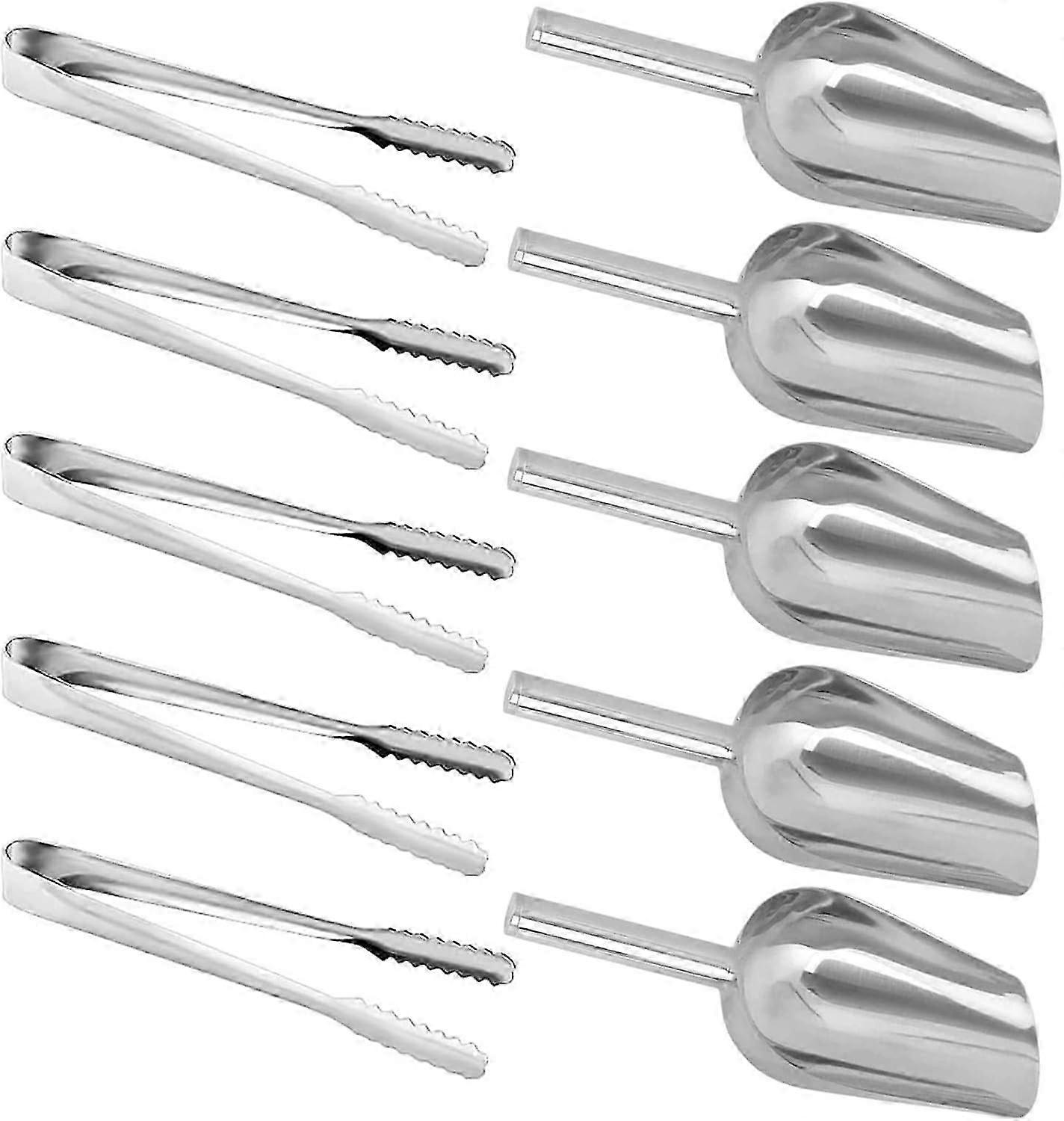 Stainless Steel Ice Scoop & Tongs Set - 8" Scoop & 6" Tongs for Party BBQ Bar Kitchen