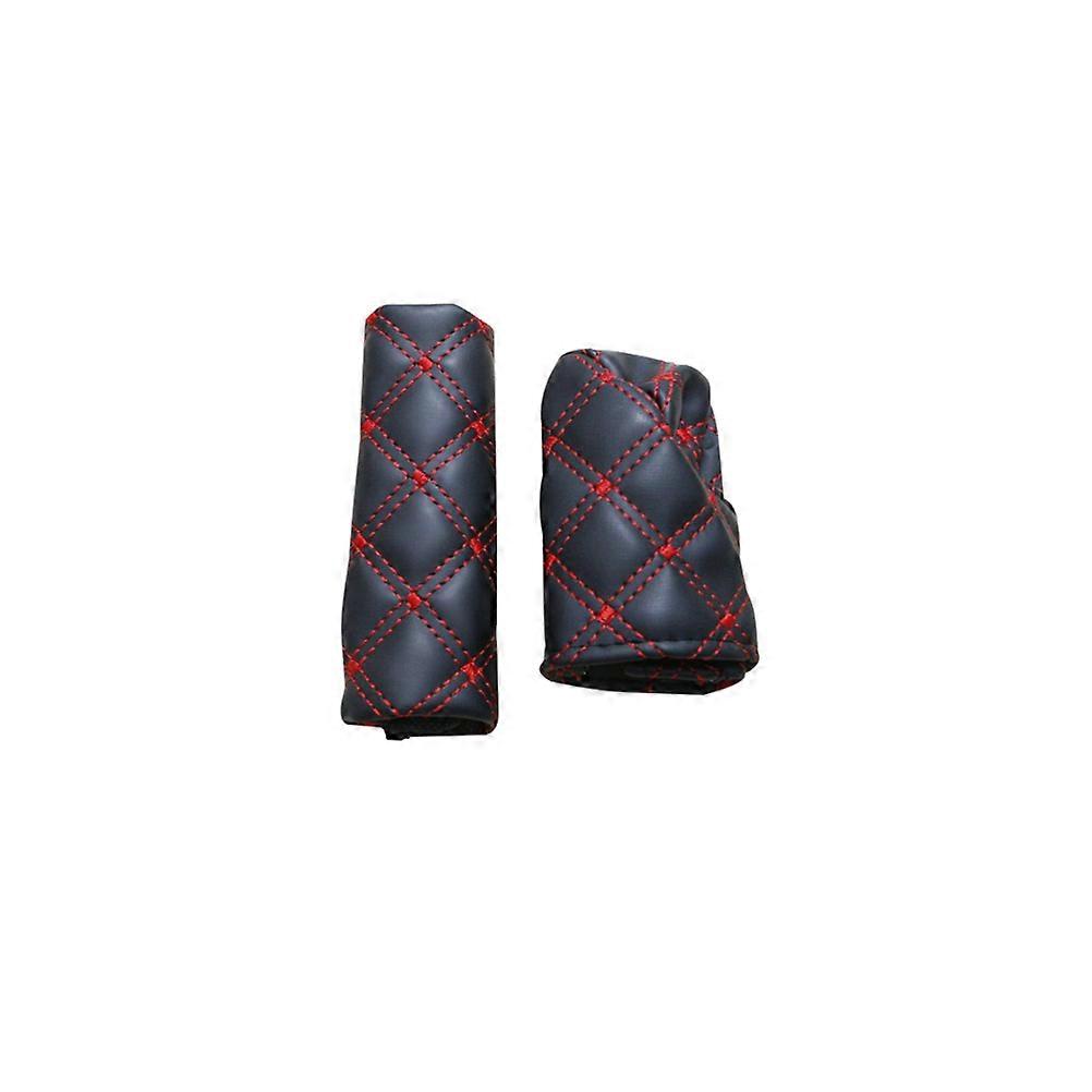 Set of Automatic PU Gear Knob and Handbrake Covers (Red+Black)